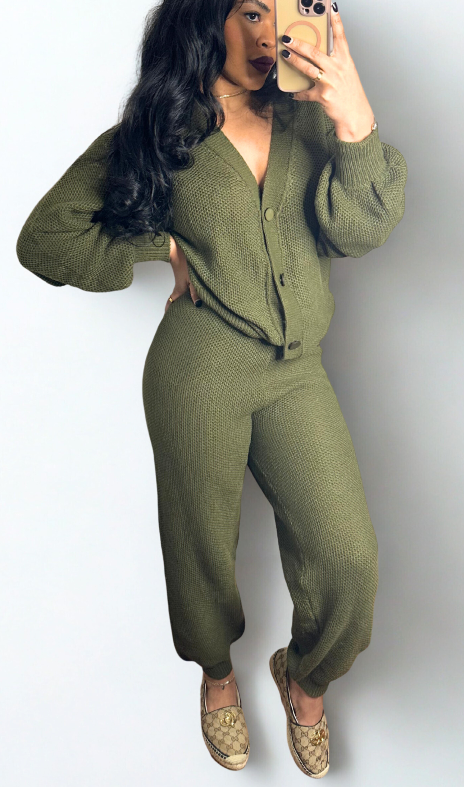 A RELAXED KNIT SET FEATURING AN OVERSIZED OPEN FRONT CARDIGAN, DRAWSTRING LOUNGE PANTS—IDEAL FOR STAYING AT HOME OR RUNNING CASUAL ERRANDS.